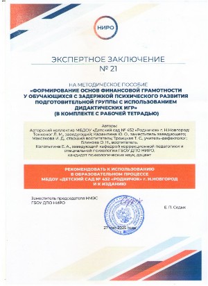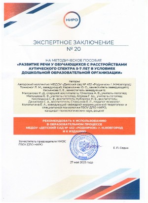 С сентября 2021 года на основании приказа от 02.07.2021 г. №225 "Об организации инновационной деятельности на базе образовательных организаций Нижегородской области" МБДОУ является региональной инновационной площадкой по теме "Разработка, апробация и внедрение учебно-методического комплекса для детей дошкольного возраста с расстройством аутистического спектра в условиях ДОО"
