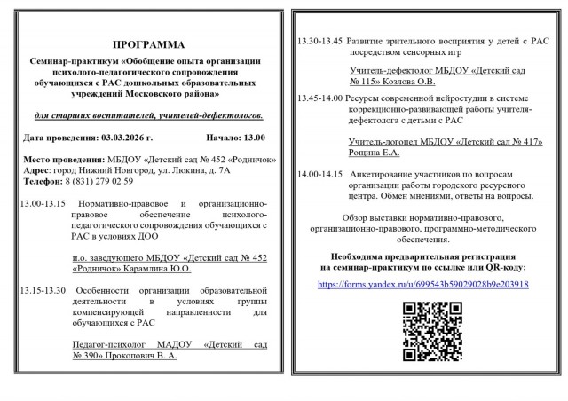 Скминар-практикум «Обобщение опыта организации психолого-педагогического сопровождения обучающихся с РАС дошкольных образовательных учреждений Московского районаЗаявление о проведении обследования»