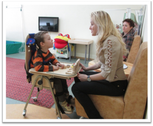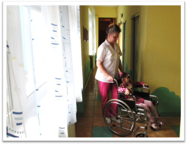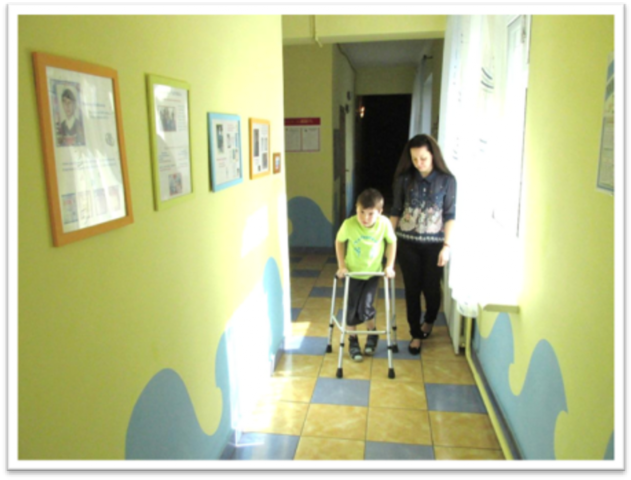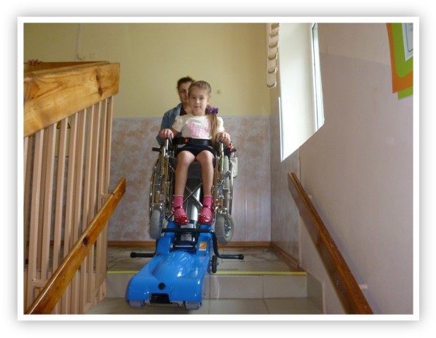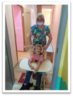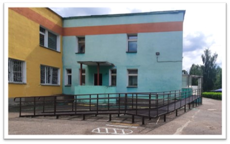 На входе в здание установлен пандус; в группах для детей установлены расширенные беспороговые дверные проемы; имеются подъемник, вертикализаторы, коляски, ходунки, подставки под ноги; в туалетных комнатах - поручни, дополнительные перила вдоль лестничных маршев, края лестниц обозначены контрастной маркировкой.