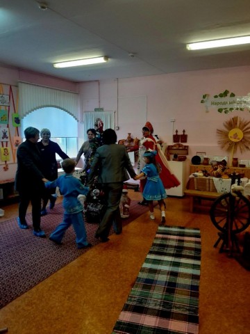 Представление экспозиции происходило в виде экскурсии: членов жюри встречала Бергиня Музеевна Родникова и дети подготовительной группы № 6, которые рассказали об удивительной экспозиции "В ожидании новогодних чудес".